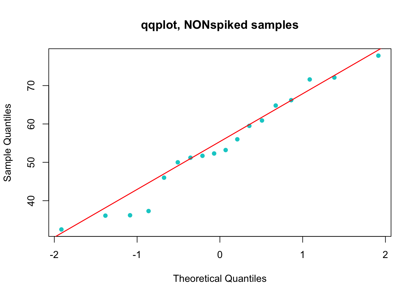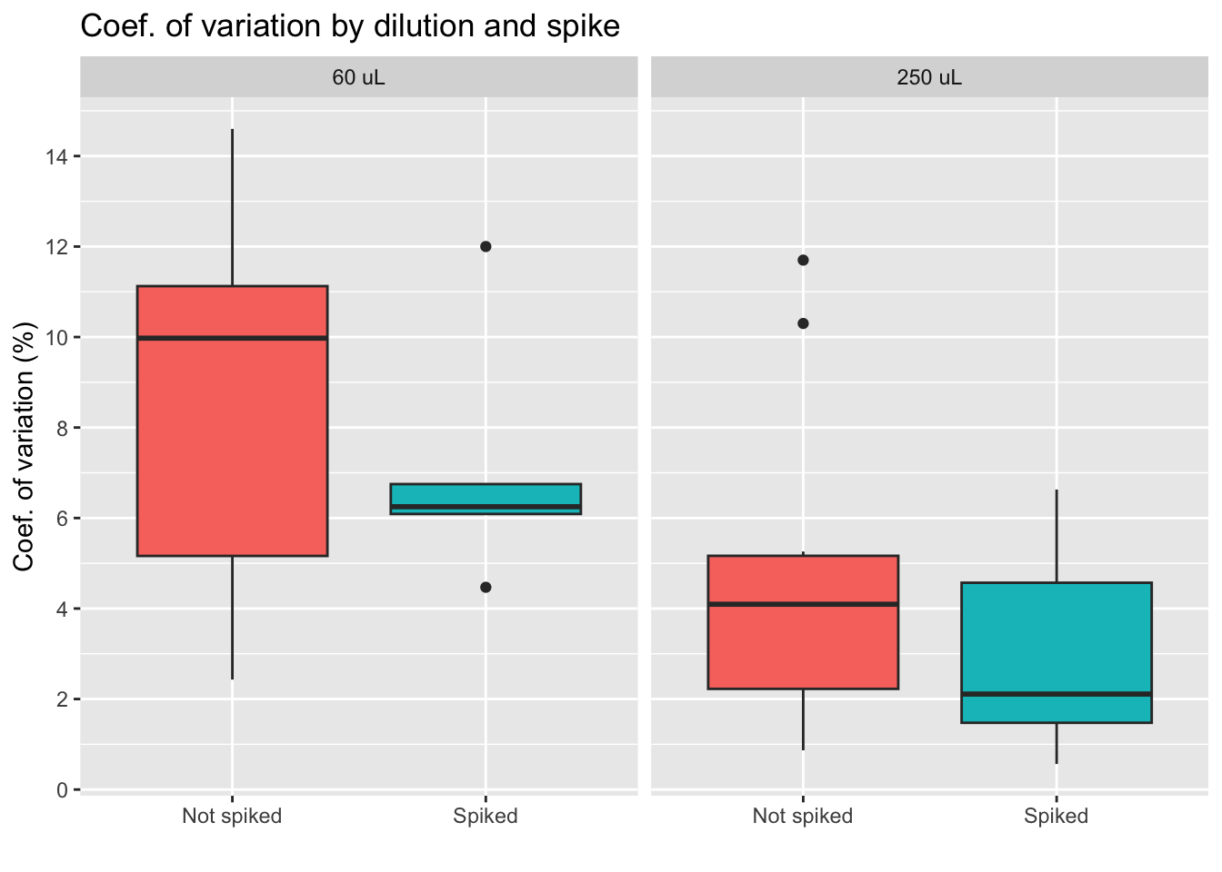 spike (25 uL stock solution (1:10) added to some wells, coded as 0 and 1, meaning not-spiked and spiked)
